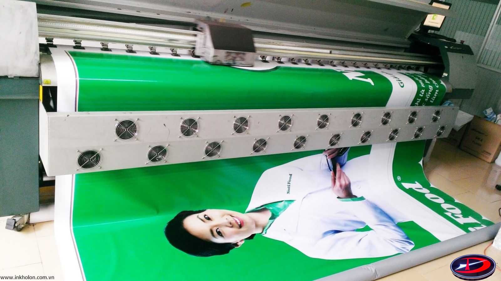 - Sấy khô: Sấy khô bạt in để mực in bám chắc trên bạt.