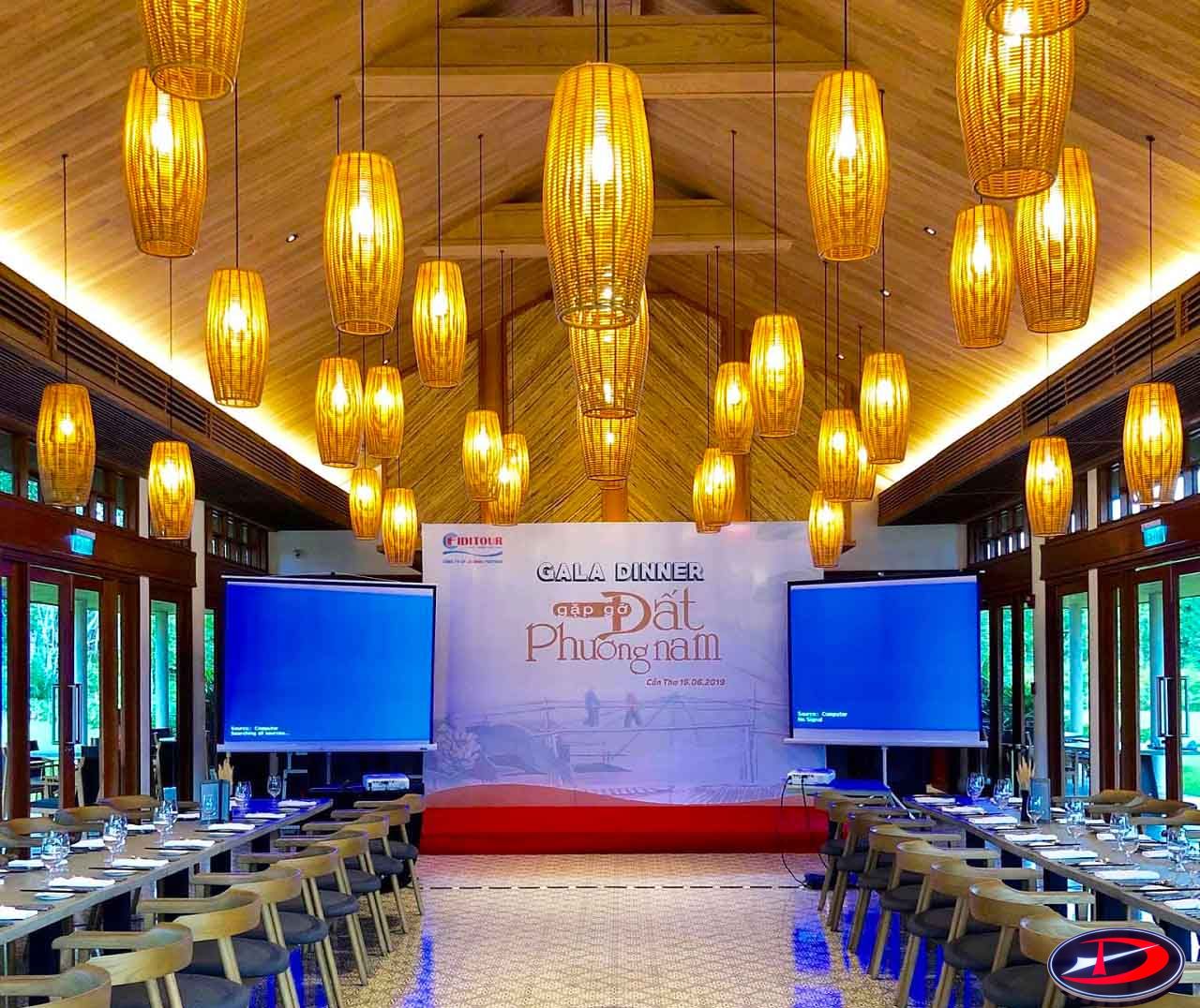 - Thiết kế và thi công: Chúng tôi sẽ thiết kế và thi công sân khấu, backdrop, hệ thống âm thanh ánh sáng, trang trí,... theo chủ đề du lịch.